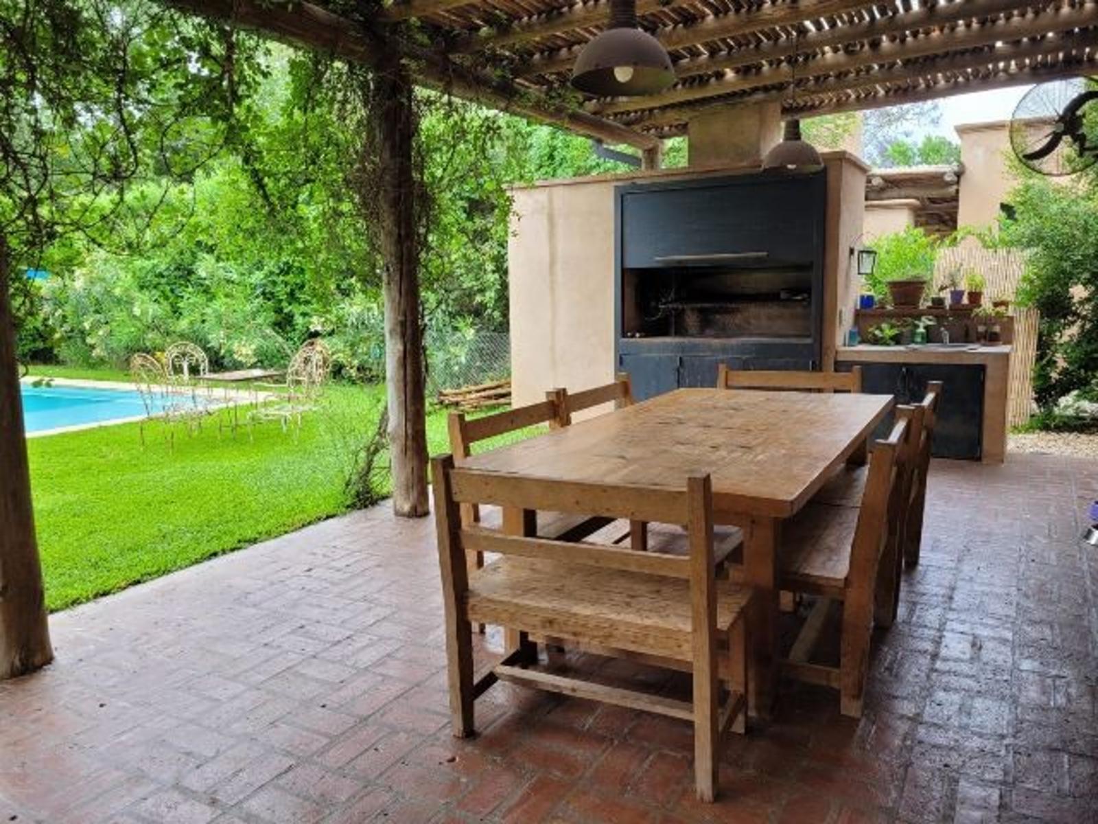 Disponible del 20/01/2026 al 20/02/2026. 3 dormitorios (1 en suite). 2 baños completos. Toilette. Cocina con comedor diario. Galería con parrilla y fogonero. Jardín con pileta.